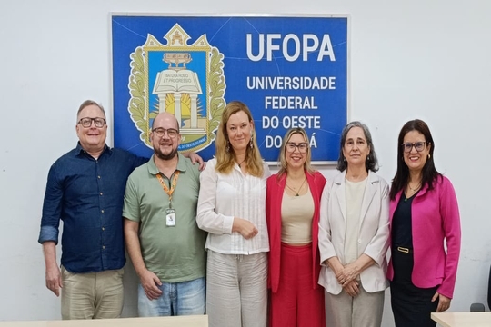 A Assessoria de Relações Nacionais e Internacionais (ARNI) da Ufopa recebeu neste dia 30/06/2025 a visita da Profa. Dra. Renata Diaz-Szmidt do Instituto de Estudos Ibéricos e Ibero-Americanos da Universidade de Varsóvia (Polônia) e da Profa. Dra. Eliane Machado Soares da Universidade Federal do Sul e Sudeste do Pará (UNIFESSPA), que juntamente com a prof. Dra. Ediene Ferreira Pena e Prof. Dr. Roberto Nascimento Paiva da Ufopa estiveram discutindo os aspectos formais para a finalização de tratativas para assinatura de um Protocolo de Intenções (MoU) tripartite entre as instituições e demais aspectos para a celebração de um Acordo de Cooperação Internacional (ACI) na área da Linguística.